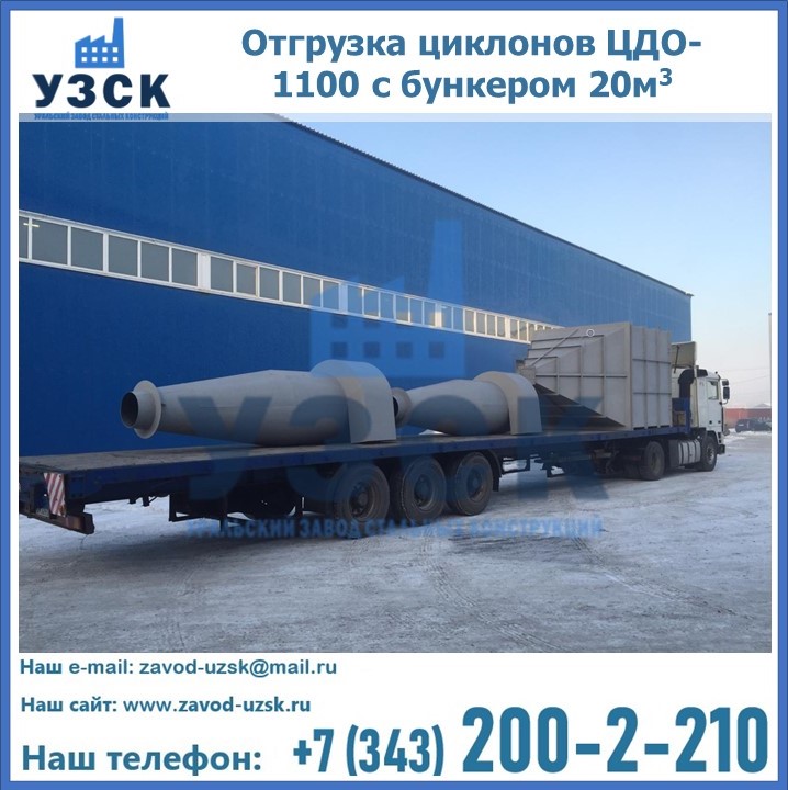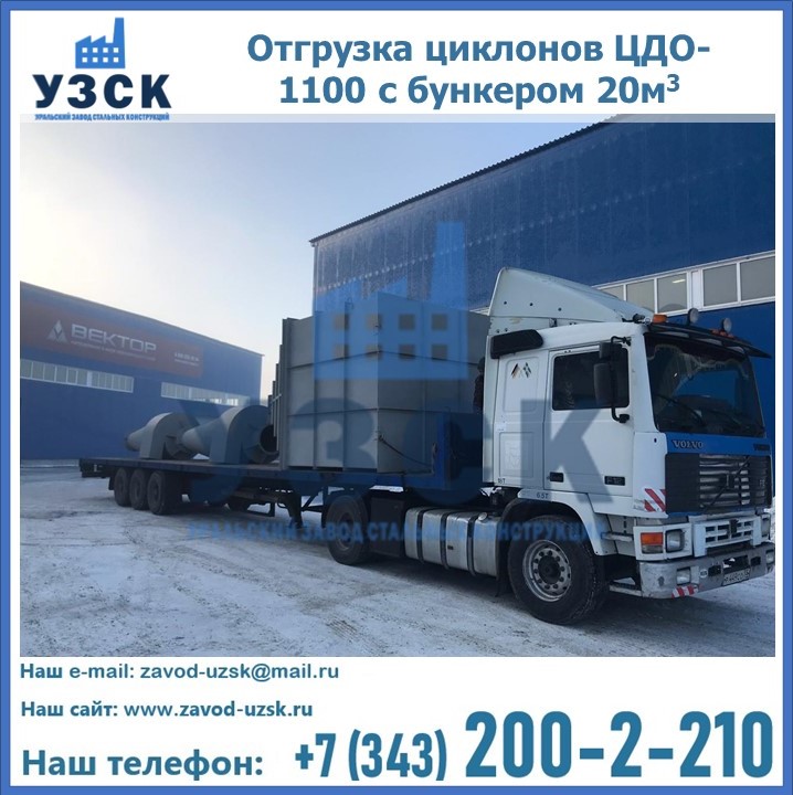 Циклоны ЦДО-1100 с бункером на 20 кубов были отгружены в декабре 2018 года в г. Новосибирск Артем.