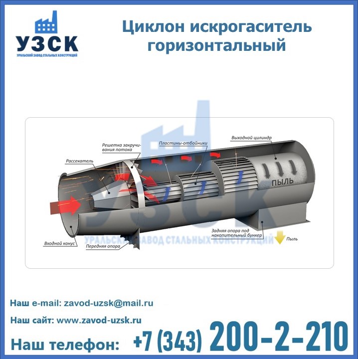 Горизонтальные циклоны-искрогасители ЦГ поставляются в Артеме в сборке или же транспортными единицами для последующей сборки, если предназначены для работы с большими объемами.