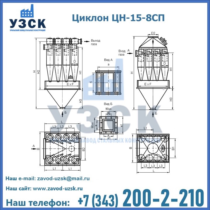 Завод «УЗСК» в Артеме предлагает большой выбор циклонов ЦН-15-500×8СП и прочих устройств, полностью укомплектованных и готовых к эксплуатации. Мы гарантируем соответствие оборудования всем требованиям ГОСТ и ТУ, износостойкость и высокую производительность предлагаемого оборудования. Уральский Завод Стальных Конструкций изготавливает и продает надежное, эффективное и производительное оборудование, имеющее длительную гарантию и большой эксплуатационный ресурс. Если требуется изготовить циклон нестандартных размеров, то такой вариант выполнения заказа тоже предусмотрен, так как предприятие имеет собственные производственные площади и надежных поставщиков. На все поставляемое или производимое оборудование имеются чертежи и прочая техническая документация. Заказать и купить циклоны или прочее оборудование высокого качества и по доступной цене можно через наш сайт или по указанному в разделе